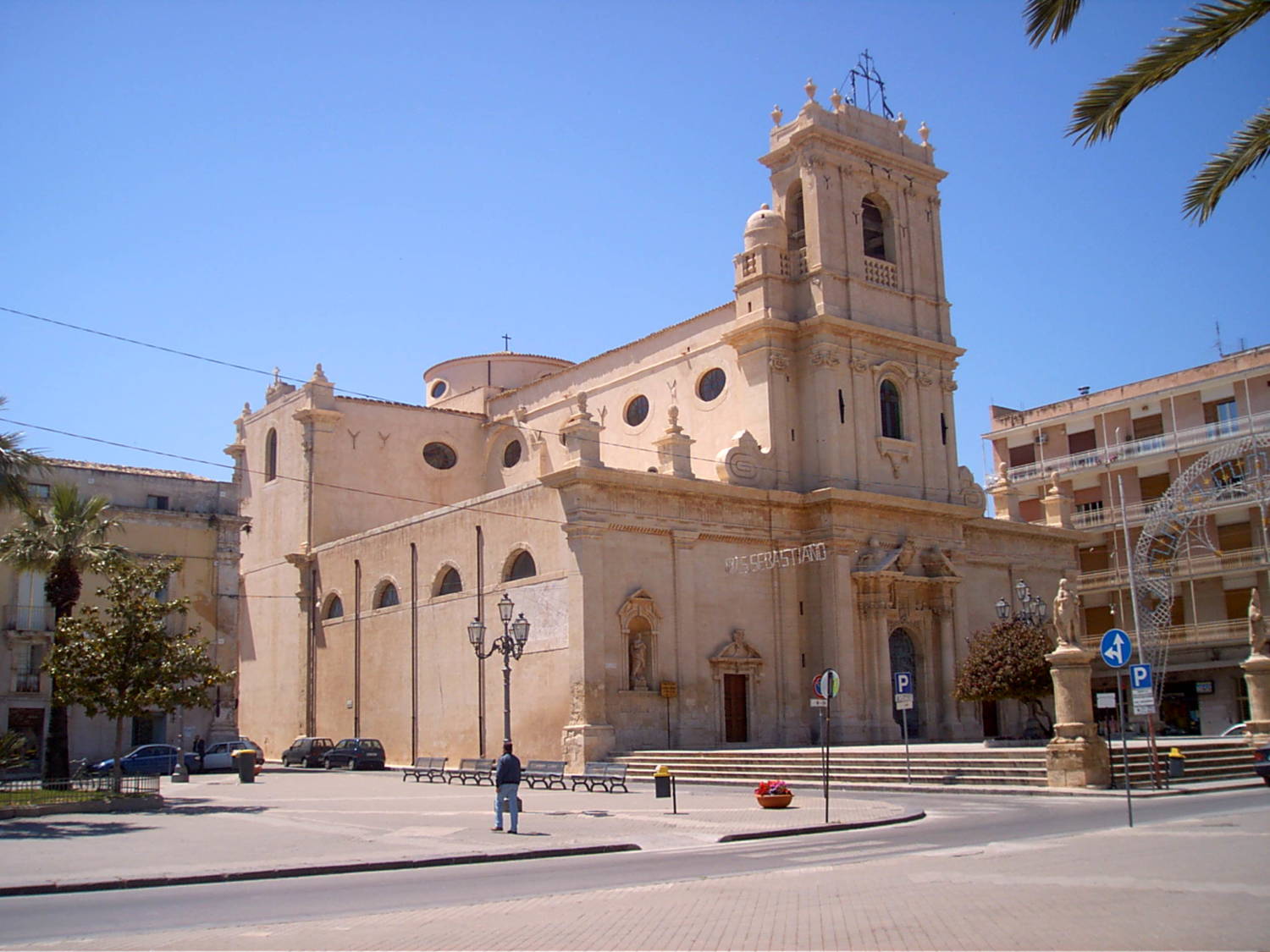 Unusual the bell tower of the cathedral, dedicated to the “Immacolata” (St Mary), rebuilt a few years after the earthquake of 1693, 34 metres high.