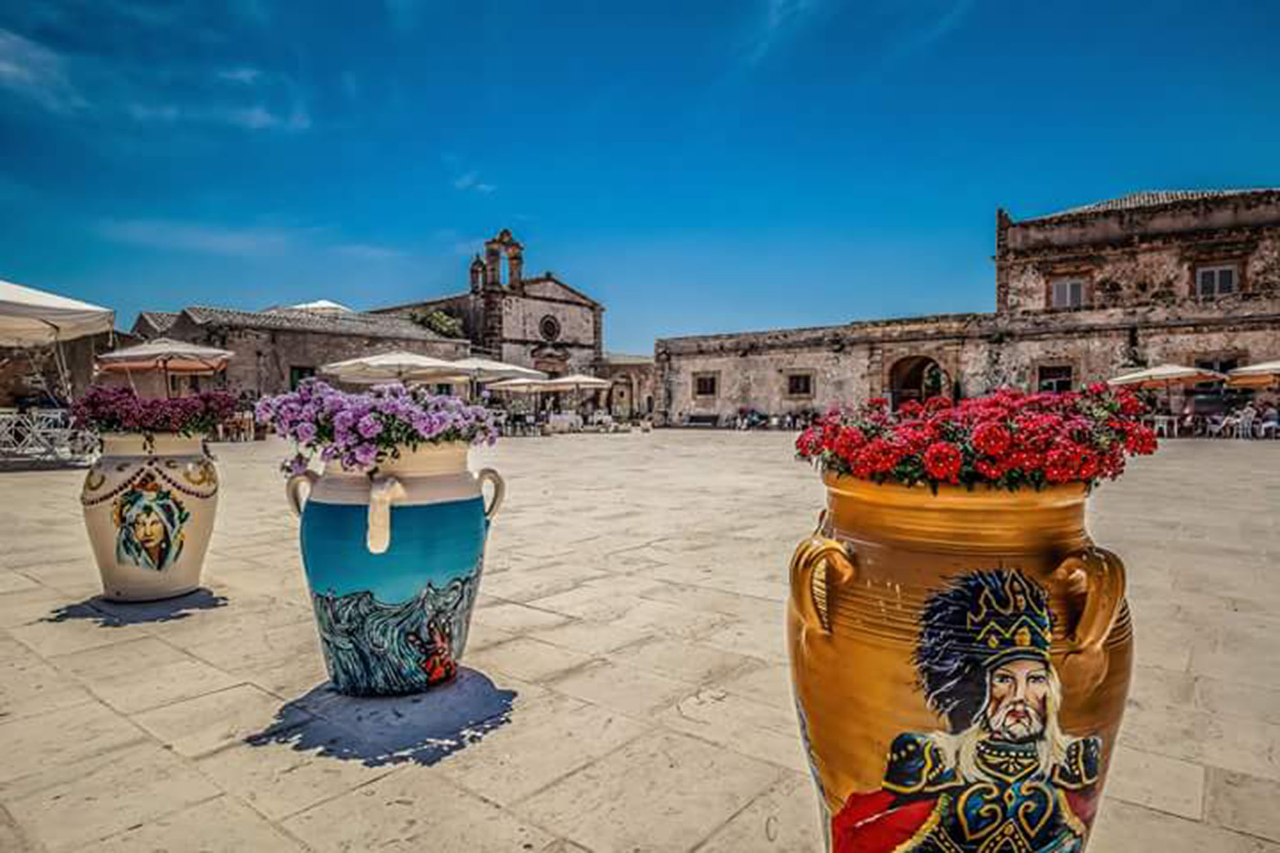 The economic activity of Portopalo is based especially on fishing and on the flourishing activity of its fish market. In the main town square there is the church of St Gaetano, patron saint of the town, built around 1812. On the coast there are traces of silos and ancient port equipments. A necropolis of the 3rd century b.C. has recently been discovered in Manniri street. In front of the coast there is Capo Passero island whom, with low tide, you can reach even on foot. It has a lighting house and a 17th century tower, built after the fortress, wished in the 16th century by Charles 5th to defend the coast from the pirates’ attacks, was destroyed in 1526 by Turks. The island is among the thirteen Sicilian places considered interesting for their exceptional vegetation by the Italian Botanical Society.